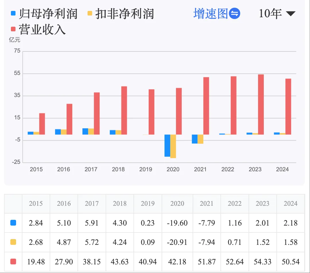 盈利能力显著修复,但营收增长乏力。 2024年营收50.54亿元,同比微降6.98%,但归母净利润实现2.18亿元,同比增长8.81%,且扣非净利润达1.58亿元,增长趋势稳健。2025年前三季度营收36.28亿元,同比微增1.21%,但归母净利润爆发式增长12.82%至2.84亿元,体现出在剥离亏损资产后,主营业务极强的盈利韧性。