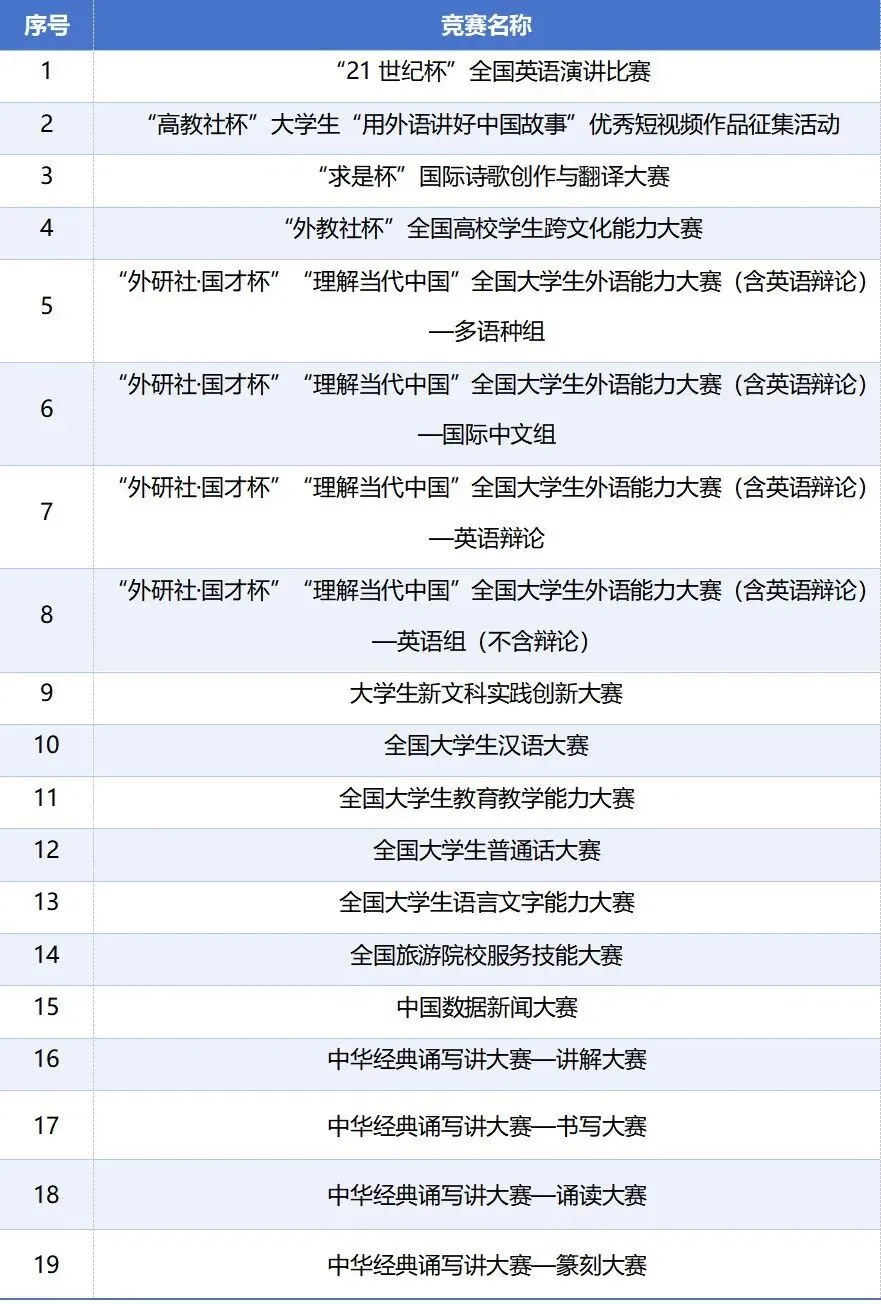 2026年1月9日,浙大城市学院高等教育数智评价研究中心公开征集人文类大学生竞赛项目,通过赛事报名、工作组审核,专家组投票,本次发布的人文类竞赛分析报告共涵盖19项竞赛(见表1),获奖数据采集范围从2024年1月1日到2025年12月31日,共计48916条。