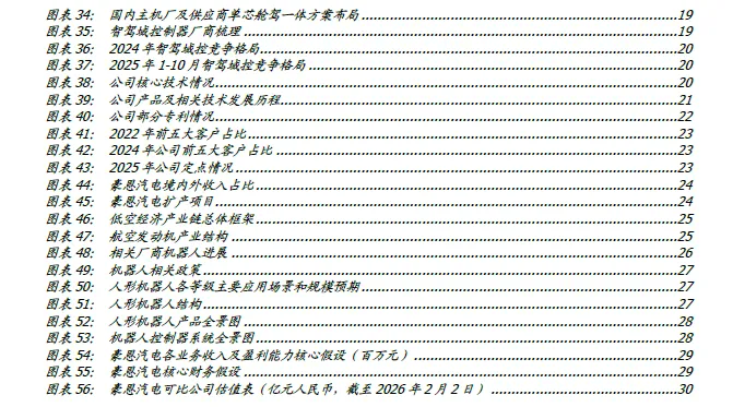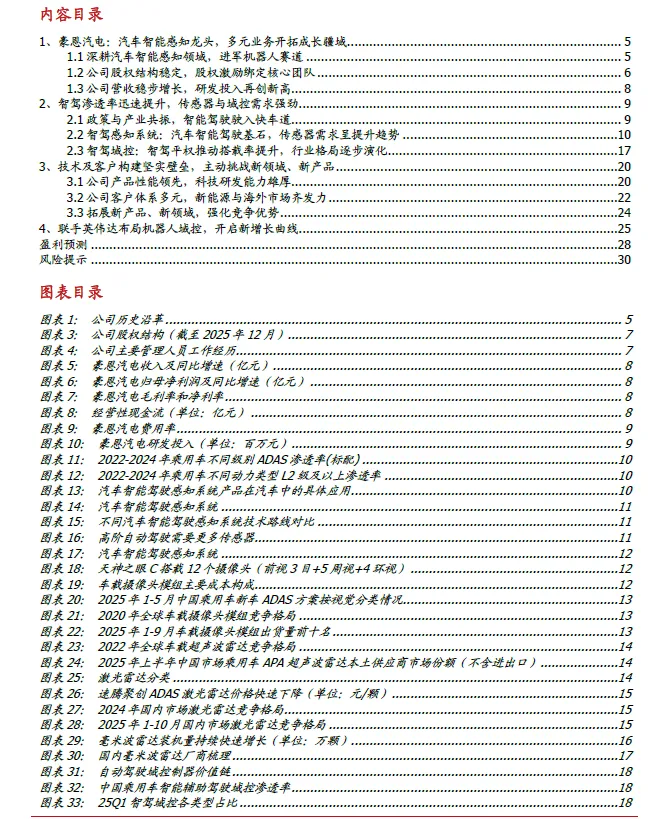 “小巨人”专精汽车智能感知,布局机器人拓展第二增长曲线。豪恩汽电自2010 年成立以来,专注于汽车智能驾驶感知系统研发。2020 年起,新能源业务加速发展,获得深圳500 强企业,研发出了车规级ADAS 毫米波雷达,顺利实现了大规模前装量产。2022年获评“国家专精特新小巨人”企业荣誉称号,2023 年成功在深交所创业板IPO 上市。2025 年,豪恩汽电正式宣布与英伟达展开合作,全面进入机器人大脑控制系统,积极布局机器人领域。