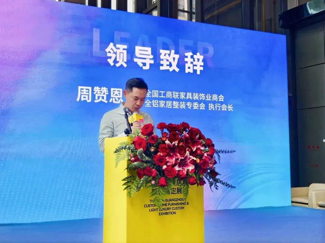 全国工商联家具装饰业商会全铝家居整装专委会执行会长周赞恩先生首先为大会致辞。他在致辞中高屋建瓴地分析了当前家居产业的发展趋势,充分肯定了全铝家居在健康、环保、可持续方面的独特优势,并对专委会及行业同仁在过去一年的努力与成果表示赞许,同时对行业的未来发展提出了殷切期望。