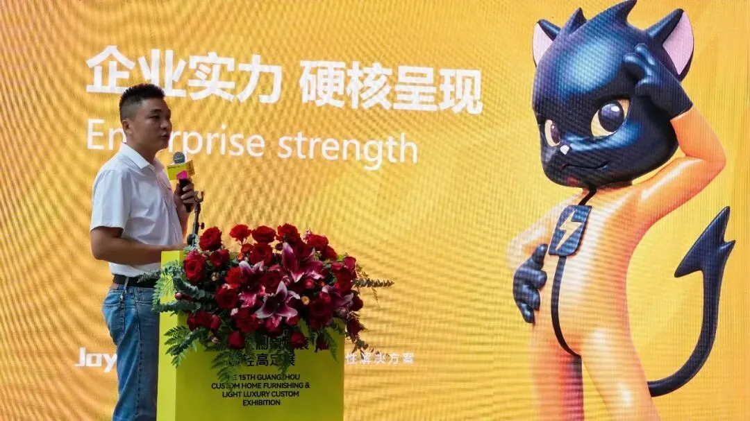 紧随其后的企业演讲环节聚焦产业实践与技术创新。左邻五金总经理温雄杰先生率先登场,以“全铝家居五金新品讲解”为题,分享了供应链前端在连接件、功能性五金等方面的最新研发成果,阐述了优质五金如何为全铝家居的稳固性与体验感奠定坚实基础。