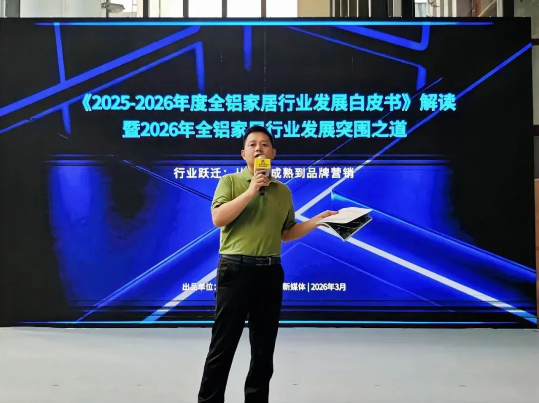活动的又一重量级环节,是《全铝家居商讯》新媒体创办人、健康家居全铝专委会秘书长王小锋先生带来的主题演讲——《2025全铝家居白皮书解读及2026行业破局之道》。在近半小时的分享中,王小锋秘书长对刚刚发布的白皮书核心数据与观点进行了深度剖析,梳理了2025年全铝家居行业在市场规模、产品创新、渠道变革等方面的关键动态,并基于详实的行业调研,前瞻性地提出了2026年行业面临的机遇、挑战与具体的破局思路。演讲内容扎实、见解深刻,为在场企业指明了未来发展的方向。
