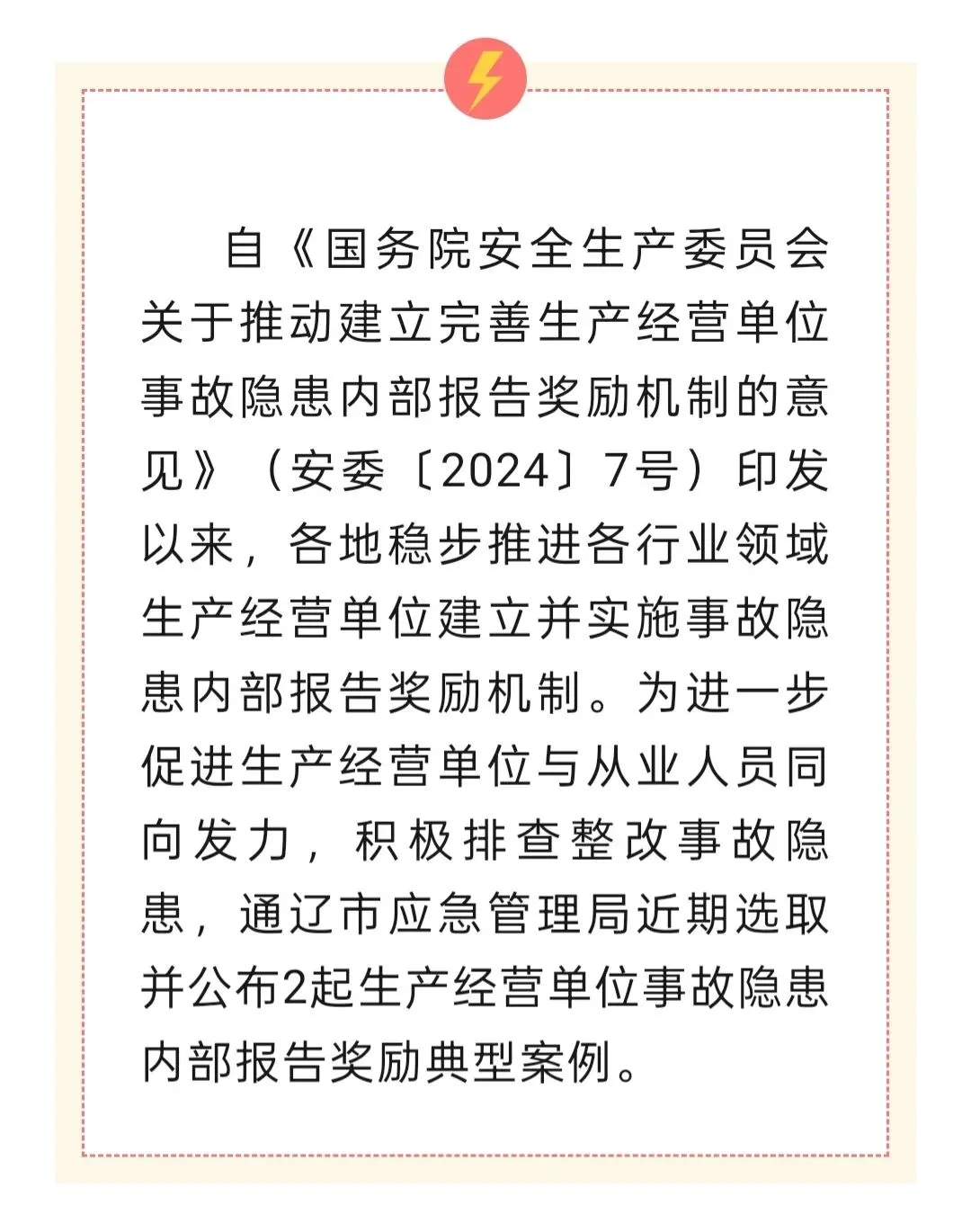 通辽市应急管理局公布2起生产经营单位事故隐患内部报告奖励案例