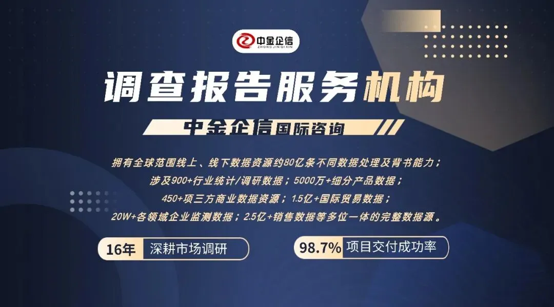 中金企信(北京)国际信息咨询有限公司(简称:中金企信;中金企信国际咨询)成立于2010年,总部位于北京,全国多个城市设有联络处及外派人员。中金企信为国家统计局涉外调查许可单位、中国广告协会会员单位、中国认证认可协会会员单位;荣获ISO信息安全管理体系、AAA企业信用机构、重合同守信用单位、重质量服务信誉单位、诚信经营示范单位等荣誉机构,致力于为国内外“政府部门/机构组织/各领域企业等提供战略咨询、产业规划、市场调查、市场地位调研、市场占有率、国产化率报告、品牌价值评估、问卷评估、进入性研究、数据分析、定制报告、项目可行性/商业计划书、行业研究等全套解决方案”的专业咨询顾问机构。
