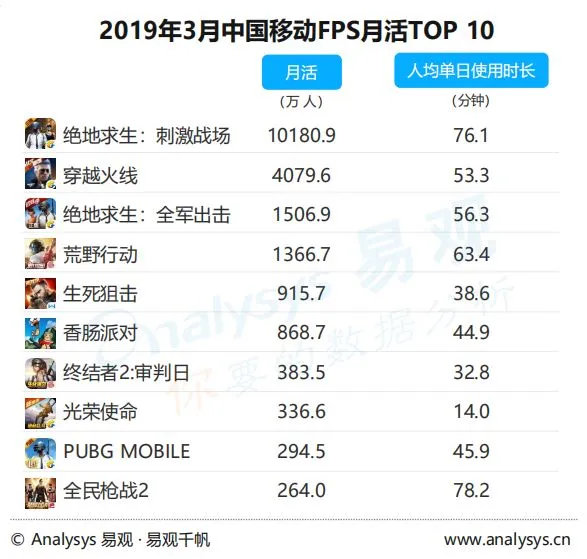 作为国内当下最大的细分市场之一,FPS的异军突起很大程度上得益于以《PUBG》为代表的战术竞技类产品,今年3月的移动FPS榜单TOP10中,有5款为此玩法,其中,《绝地求生:刺激战场》的月活更在1亿以上。值得注意的是,排名靠前的产品仅《穿越火线》为非战术竞技产品,短短两年时间战术竞技已占到了移动端FPS游戏的绝对大头。而在腾讯的《和平精英》取代此前的两款“吃鸡”手游正式上线后,其商业潜能也将被彻底释放。