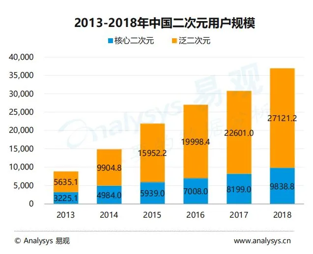 用户层面,包括核心二次元用户及泛二次元用户在内的二次元群体数目正在快速攀升。截止到2018年,核心二次元用户规模接近1亿,二次元用户大盘规模达3.5亿。
