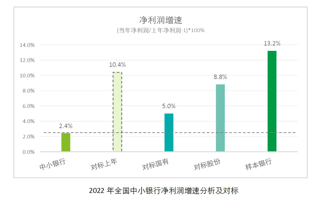 我们选择的32家样本银行,都是上市银行,包括城商行及农商行。所有样本银行2022年录得净利润总额为2,257.5亿元,占全国中小银行净利润总额的48.7%,而平均利润增速达13.2%,显著高于中小银行整体平均水平,甚至高于全国股份制银行的平均值,是值得深入研究的样本集(如下图)。有兴趣的读者可以下载报告全文查看完整名单。