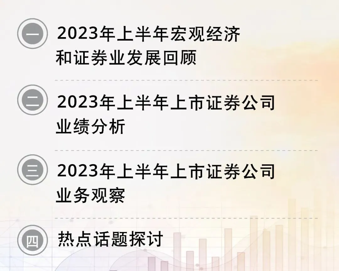 报告主要以国内具有代表性的14家A+H股上市证券公司为样本,通过系统分析中国上市证券公司的盈利能力及业务收入、资产情况、负债情况、母公司资本情况及风险控制指标,梳理并观察其业务发展情况、经营模式创新、经营战略变化及科技赋能,进而展现中国证券业在2023年上半年取得的成就,并展望未来发展的方向。