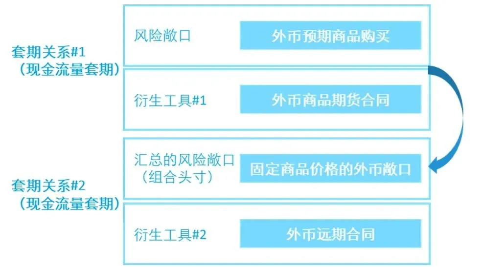 新套期会计准则允许将符合被套期项目条件的风险敞口与衍生工具组合形成的汇总风险敞口作为被套期项目,有助于企业管理多项风险。例如,A企业对于以美元计价的商品具有预期购买需求。为管理商品价格风险,A企业可在买入交易发生的前两年将价格固定在每单位商品100美元并订立净额结算的远期合同。一年后,A企业可对预期购买交易与商品远期合同组合产生的外币风险,即针对其按每单位100美元购买商品的汇总或组合的外币风险敞口使用外币远期合同进行套期。