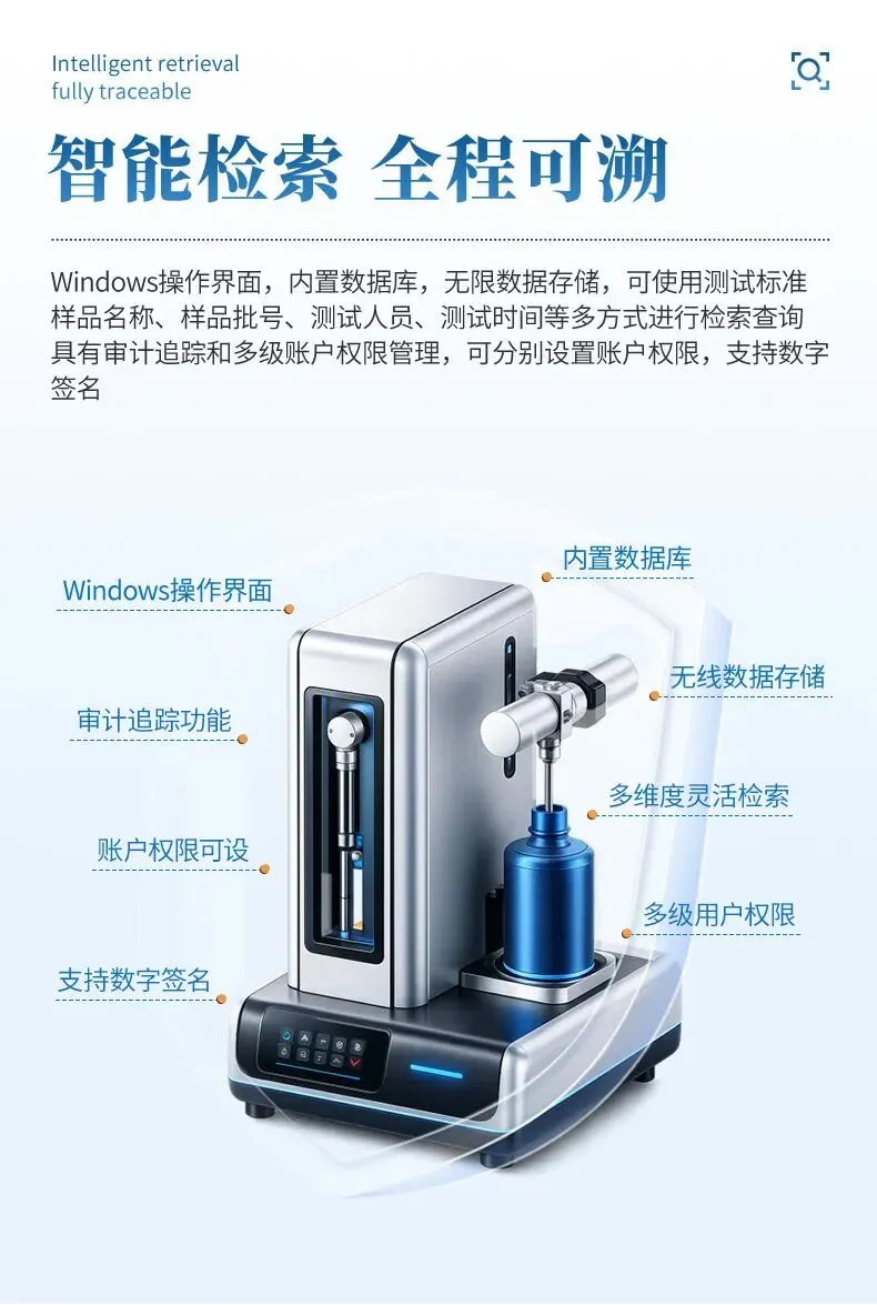 多维检索功能:按测试标准、样品名称、样品批号、测试人员、测试时间查询