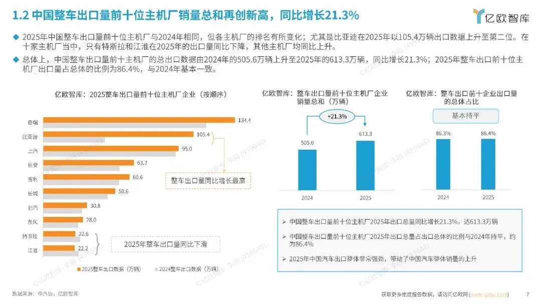 - 2025年中国新能源汽车出口量达261.5万台,同比增长102%。