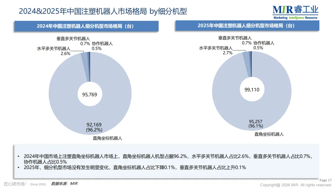 二、注塑机器人市场:直角坐标主导,五轴趋势初显