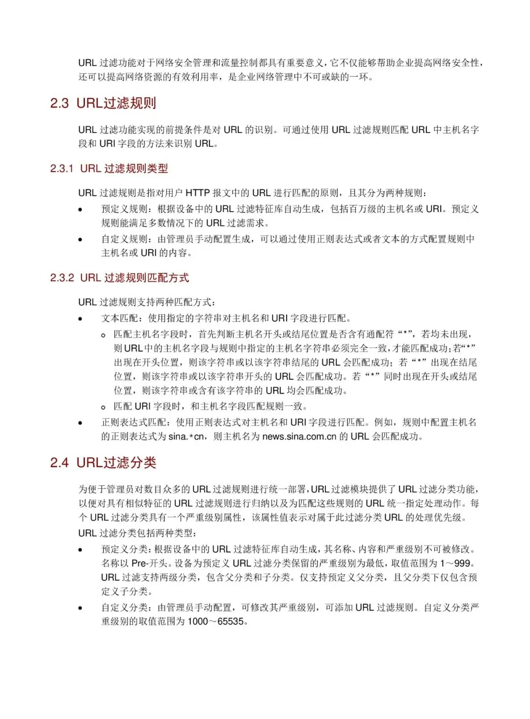 - 可配置 URL 过滤分类、黑/白名单规则及缺省动作。