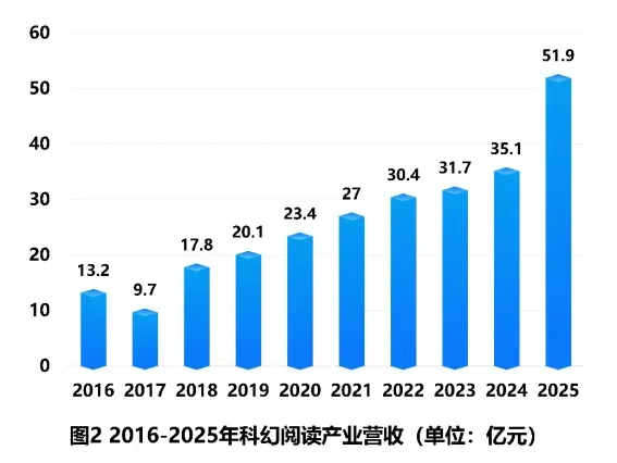 科幻阅读产业全年总营收51.9亿元,实现连续八年增长。数字阅读规模达37.3亿元,科幻网络文学成为核心增长动能。