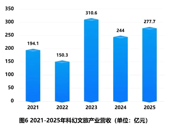 科幻文旅产业全年总营收277.7亿元,同比增长13.8%。主题公园贡献核心收入,本土原创游乐项目持续增加。VR大空间、沉浸式展览和剧本娱乐等新场景不断拓展体验边界。