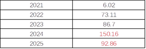 2025年四季度,公司利润下降了57.3亿。下表是近五年公司四季度利润情况: