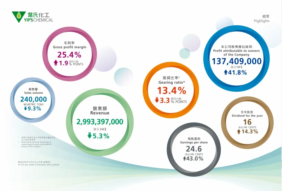 透过深耕行业细分领域、优化产品组合、提升产品技术与服务,同时受惠于原料价格稳定,涂料及油墨业务的毛利率均较去年改善,令集团整体毛利率上升至25.4%,同比增加1.9个百分点。