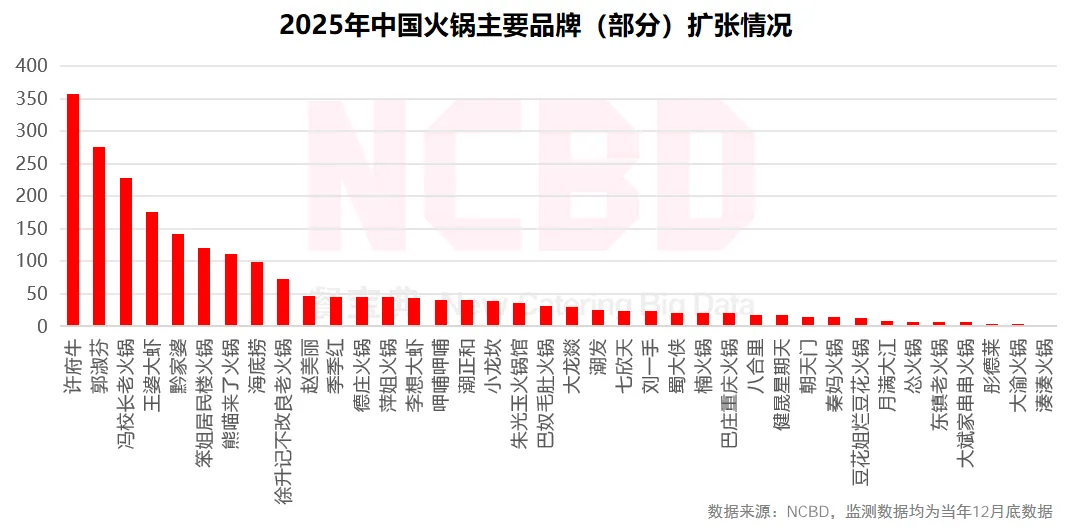 7、从主要品牌2025年的开店情况来看,许府牛等品牌保持快速扩张;一些老牌的川渝火锅则略显疲态;此外,一些过去的网红品牌增长乏力,表现不尽人意