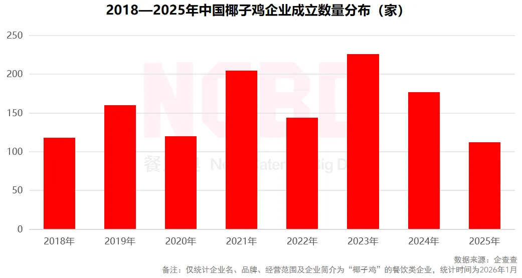 (1)2023年,中国椰子鸡相关餐饮企业成立数量为226家;2024年成立112家,较上年有所下降;整体来看,椰子鸡企业及门店数量相对较少,椰子鸡火锅属于一种具有地域特色的小众品类