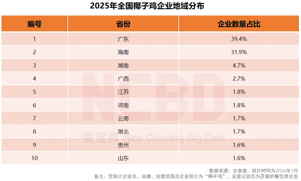 (2)椰子鸡企业地域分布