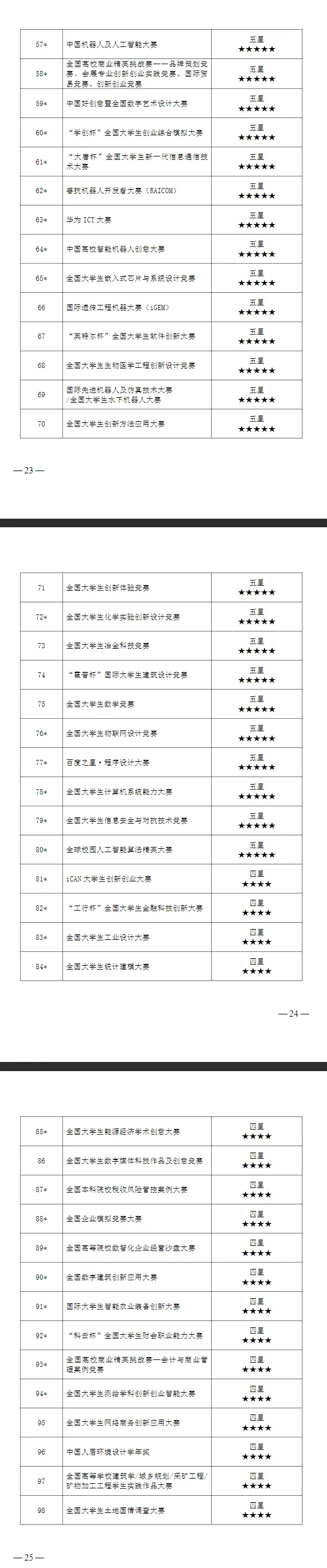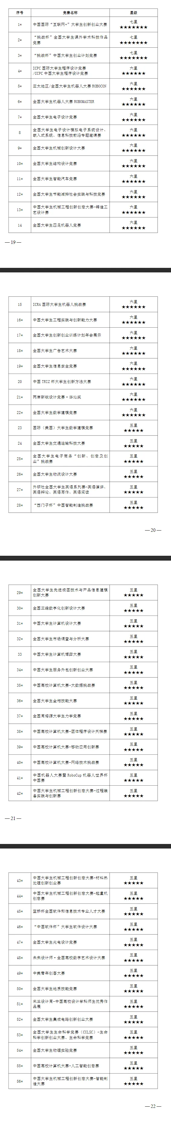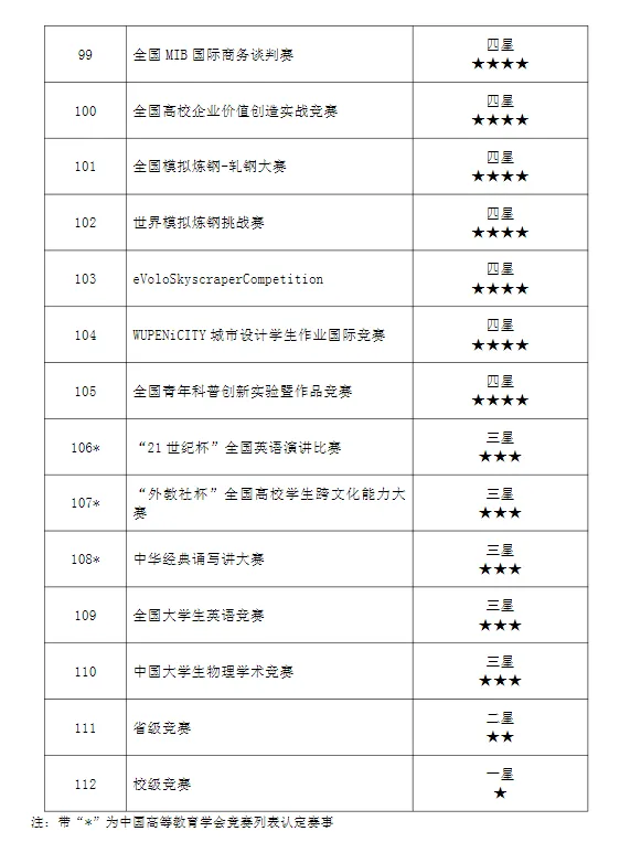 东北大学学生创新创业竞赛星级分类表(2023版)