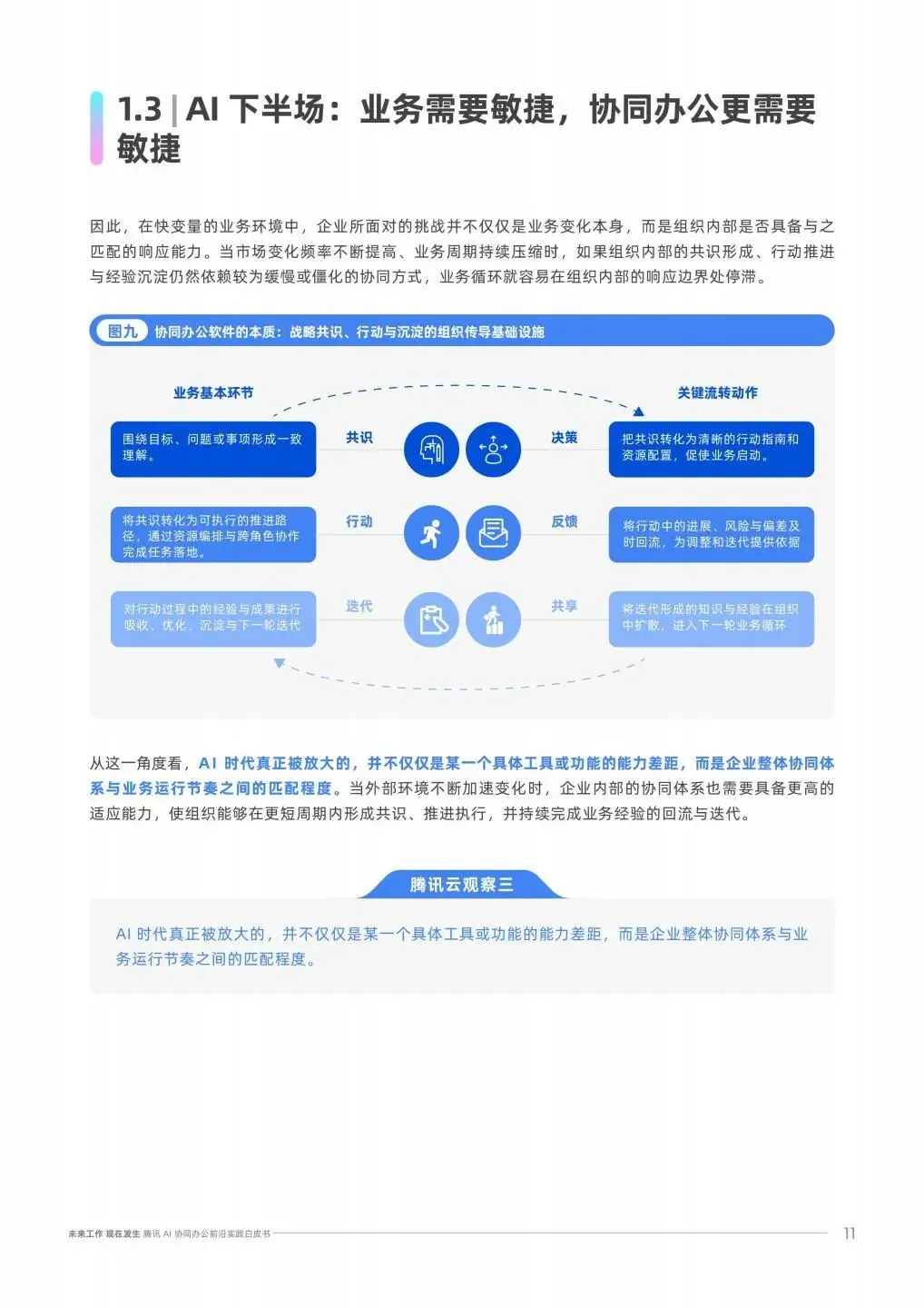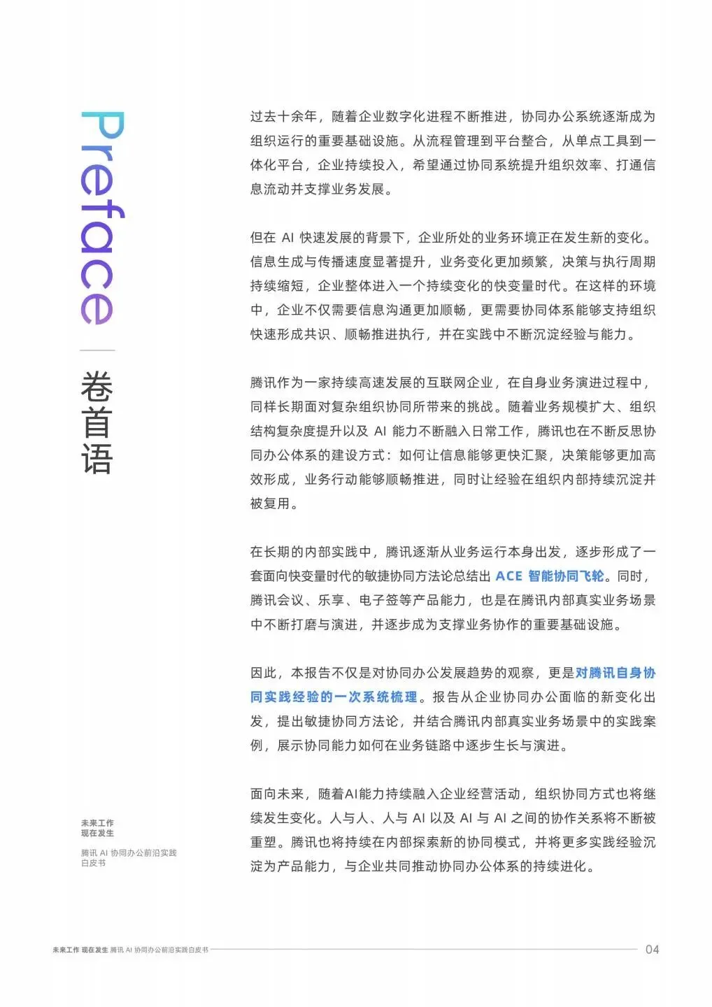 首次系统披露了腾讯内部如何依托腾讯乐享、腾讯会议、腾讯电子签三大核心产品,将AI深度融入业务流,重构协同办公体系,为企业打造了一套可复制的“降本增效”范本。