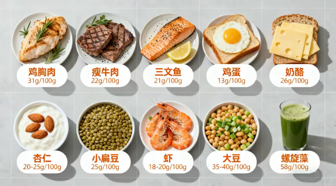 ◦ 基础打底:优质蛋白(鸡蛋、深海鱼)+ 复合碳水(糙米、燕麦)。