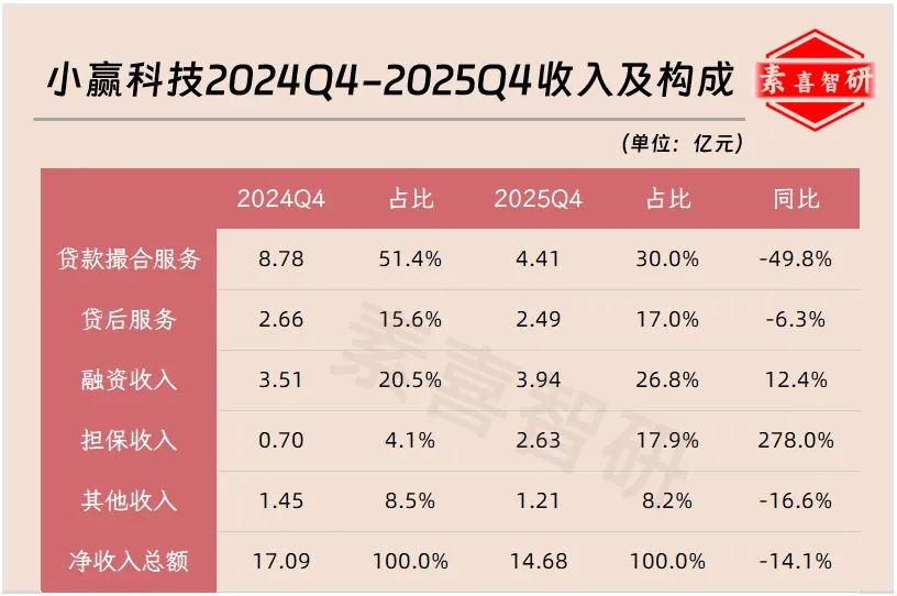 从小赢科技2025年第四季度收入情况看,其主要结构如下:
