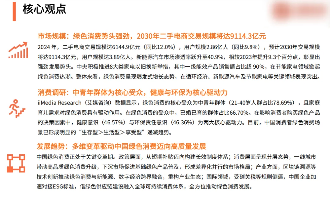 艾媒咨询《2025–2026 中国绿色消费行为白皮书》核心结论:绿色消费进入爆发式增长期,中青年为核心人群,健康与环保双驱动。二手电商、新能源汽车、节能家电、绿色食品四大赛道领跑,政策从补贴转向长效机制,技术与供应链推动绿色普惠化。