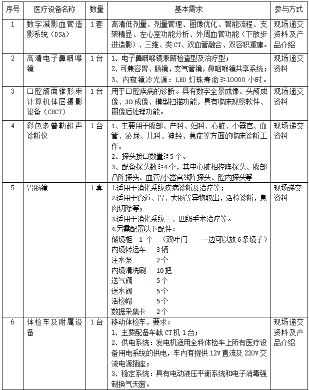 为进一步提升医疗服务能力,我院拟于近期采购医疗设备一批,现进行采购前市场调研及询价,欢迎符合资质条件的市场主体参与。
