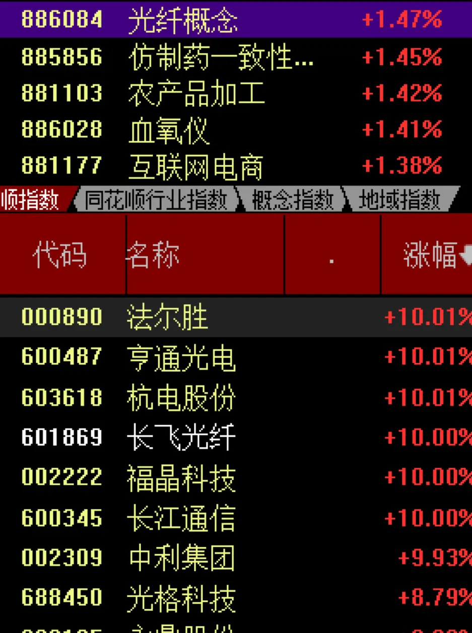 中东地缘也催化了军工信息化,成飞概念,军工电子,还涉及到了光纤概念,CPO光模块,通信设备等,长飞光纤刷了301历史新高涨停,5天3版,法尔胜2连版,而亨通光电,长心博创,光迅烽火通信,东田微,通光线缆超捷等股领涨,股性活