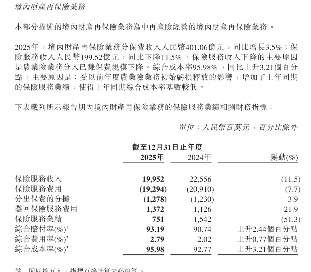 中国再保险还有大地保险的部分,综合成本率也是居高不下的,这个业务确实不看好;
