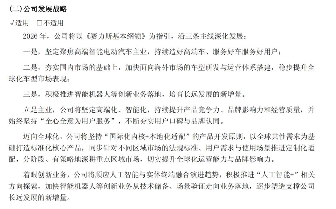 辅助驾驶及智能座舱领域,公司与华为联合开发,率先量产高精度固态激光雷达等核心传感器;智能辅助驾驶系统升级至WEWA 架构ADS4.0,行业首推矩阵式毫米波雷达、四激光雷达及视赛力斯集团股份有限公司 觉激光雷达商用。2025年,问界品牌辅助驾驶总里程达38亿公里,辅助驾驶里程占比32.9%,活跃用户占比高达 95.4%。同时,全面接入AI大模型与全量鸿蒙生态,智能座舱体验与用户满意度持续攀升。