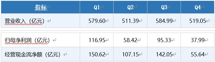分季度核心业绩