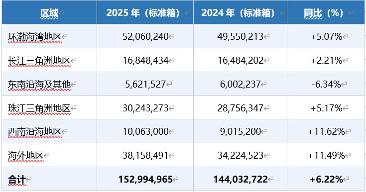 码头吞吐量区域分布(2025年)