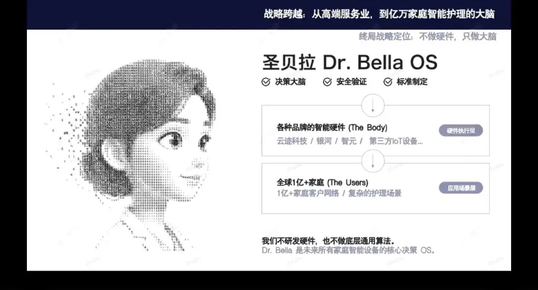 A:公司AI战略目标明确,即将“贝拉博士”打造为护理领域的行业标准。其核心路径是通过高端人群服务积累高质量数据与标准,再向行业输出。未来贝拉博士不仅是一个AI工具,更是护理决策中枢:一方面为家庭提供标准化、科学化的护理方案;另一方面向行业开放标准,通过认证体系、技术输出及授权模式赋能其他机构及硬件设备。长期来看,公司核心价值不在于门店数量,而在于其护理标准的渗透范围——即有多少家庭、服务机构及智能设备采用该标准,从而形成类似操作系统的行业基础设施地位。
