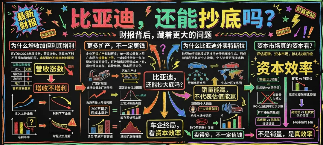 第二,资本效率能不能重新改善。也就是市场未来能不能重新看到,比亚迪不是单纯靠价格战和规模硬推,而是在更高维度上修复回报率、改善经营质量。