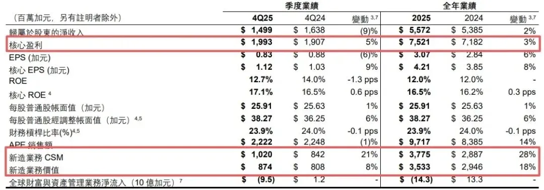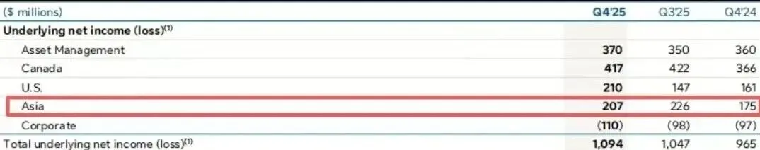 核心盈利 75亿加元的背后,同比提升3%,仅第四季度单季盈利就近20亿加元,同比增长5%,新造业务价值增速18%;亚洲核心盈利飙升至29.69亿加元,同比大涨 18% 的爆发式增长。它再次证明了亚洲市场作为全球财富管理“压舱石”的地位。