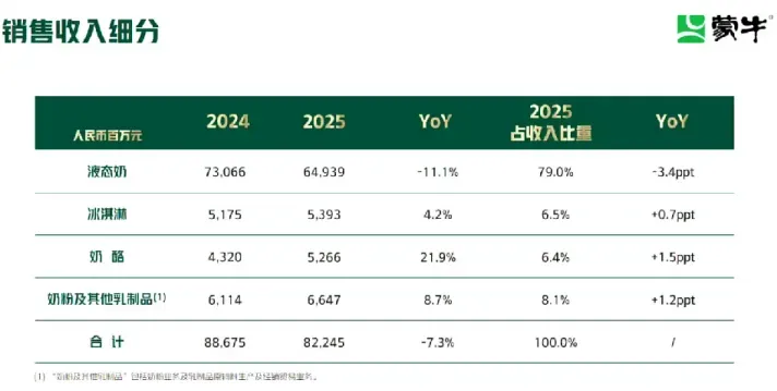 01.822.4亿!蒙牛交出2025年成绩单,多个品类双位数增长!3月26日,蒙牛乳业在香港召开了2025年度业绩发布会。业绩数据显示,蒙牛2025年实现收入822.4亿元,经营利润为65.6亿元。通过一系列精细化管理举措提质增效,蒙牛毛利率达39.9%,经营活动现金流达87.5亿元,自由现金流达63亿元,三项指标均创下历史最高水平。 从2025年的业绩表现来看,“一体两翼”全面推进,品类结构持续优化:在“一体”方面,常温、低温稳健回升,筑牢液态奶基本盘,鲜奶、奶酪、奶粉及国内冰淇淋板块均实现双位数增长;在“两翼”方面,创新业务在精深加工、功能营养等领域取得突破性进展,国际业务在东南亚市场及澳新基地均有不俗表现。