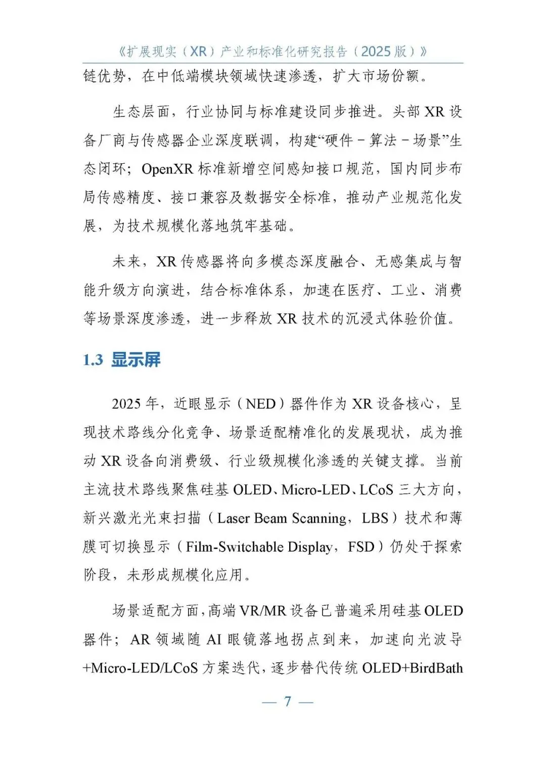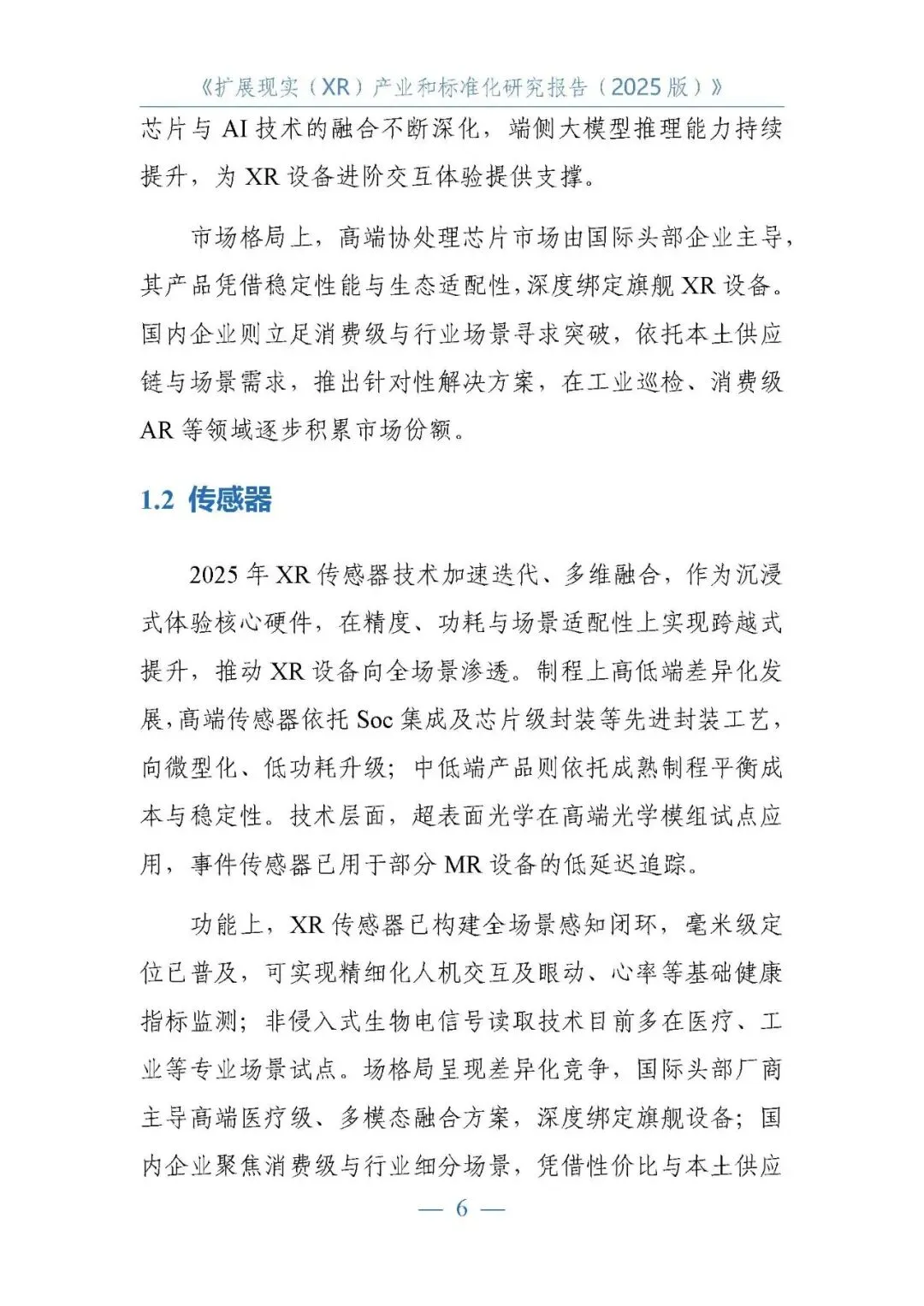 2025 年XR 传感器技术加速迭代、多维融合,作为沉浸式体验核心硬件,在精度、功耗与场景适配性上实现跨越式提升,推动XR 设备向全场景渗透。制程上高低端差异化发展,高端传感器依托Soc 集成及芯片级封装等先进封装工艺,向微型化、低功耗升级;中低端产品则依托成熟制程平衡成本与稳定性。技术层面,超表面光学在高端光学模组试点应用,事件传感器已用于部分MR 设备的低延迟追踪。