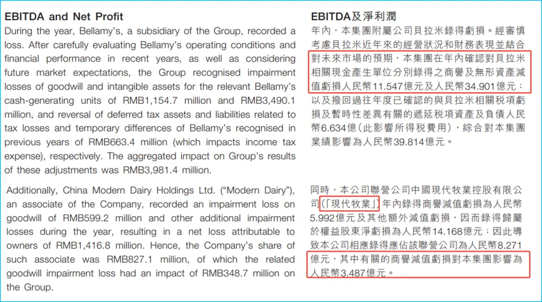 如果再考虑贝拉米无形资产减值及递延税项调整的影响。两项减值合计对蒙牛2024年业绩的影响约43.3亿元。