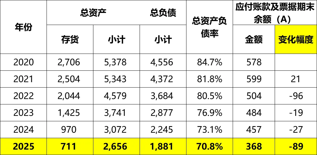 2025年末,应付账款+应付票据余额368亿,较上年度的457亿,减少了89亿。要知道,2024年末同比只减少27亿,2023年末同比只减少了19亿。