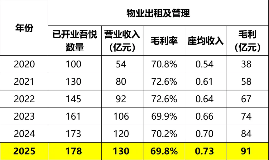 2025年吾悦营收130亿,比2024年的120亿增长了8.4%。当前公司持有和运营的吾悦有178座,比24年增加了5座。2026年计划再开业5座。