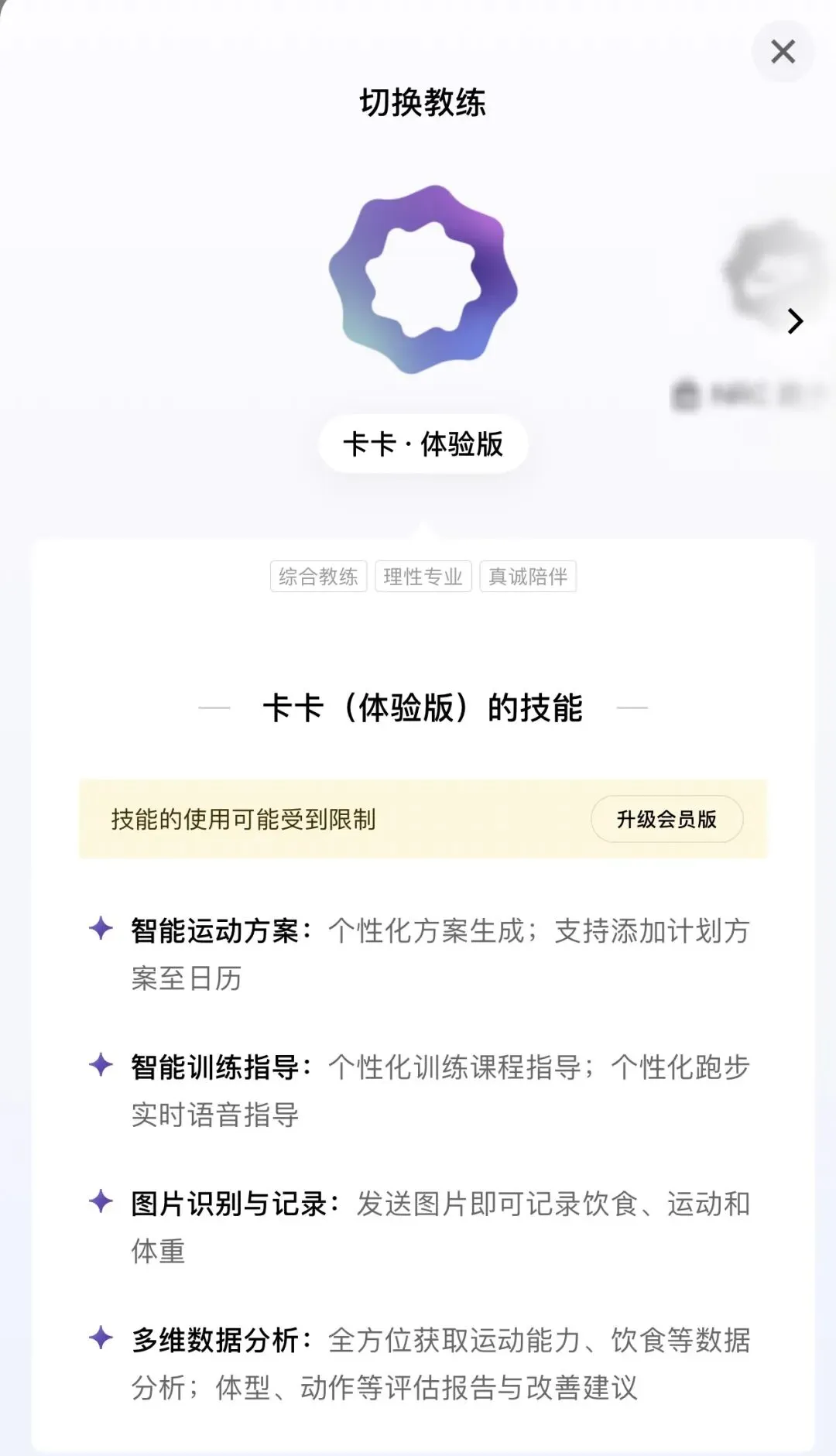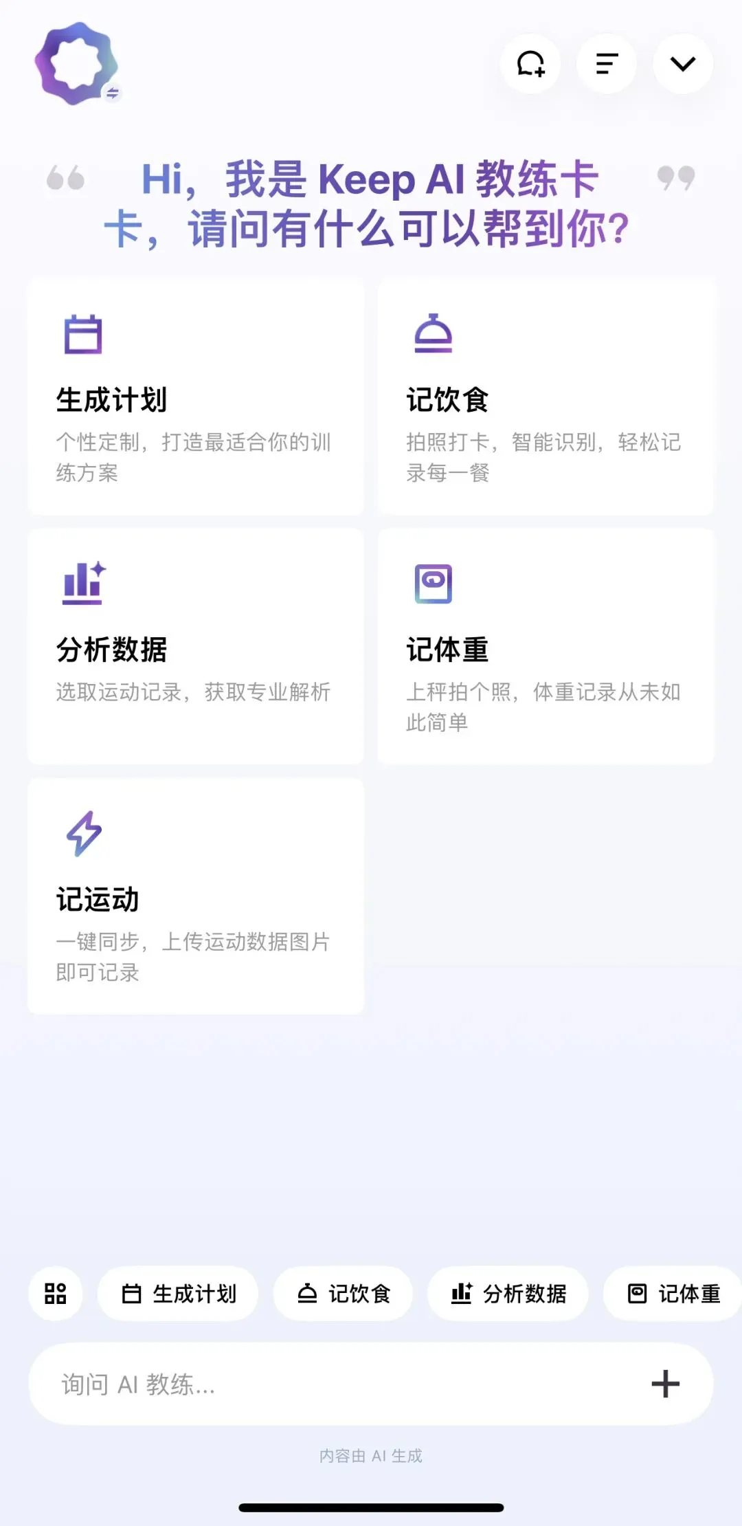 图为Keep AI教练“卡卡”