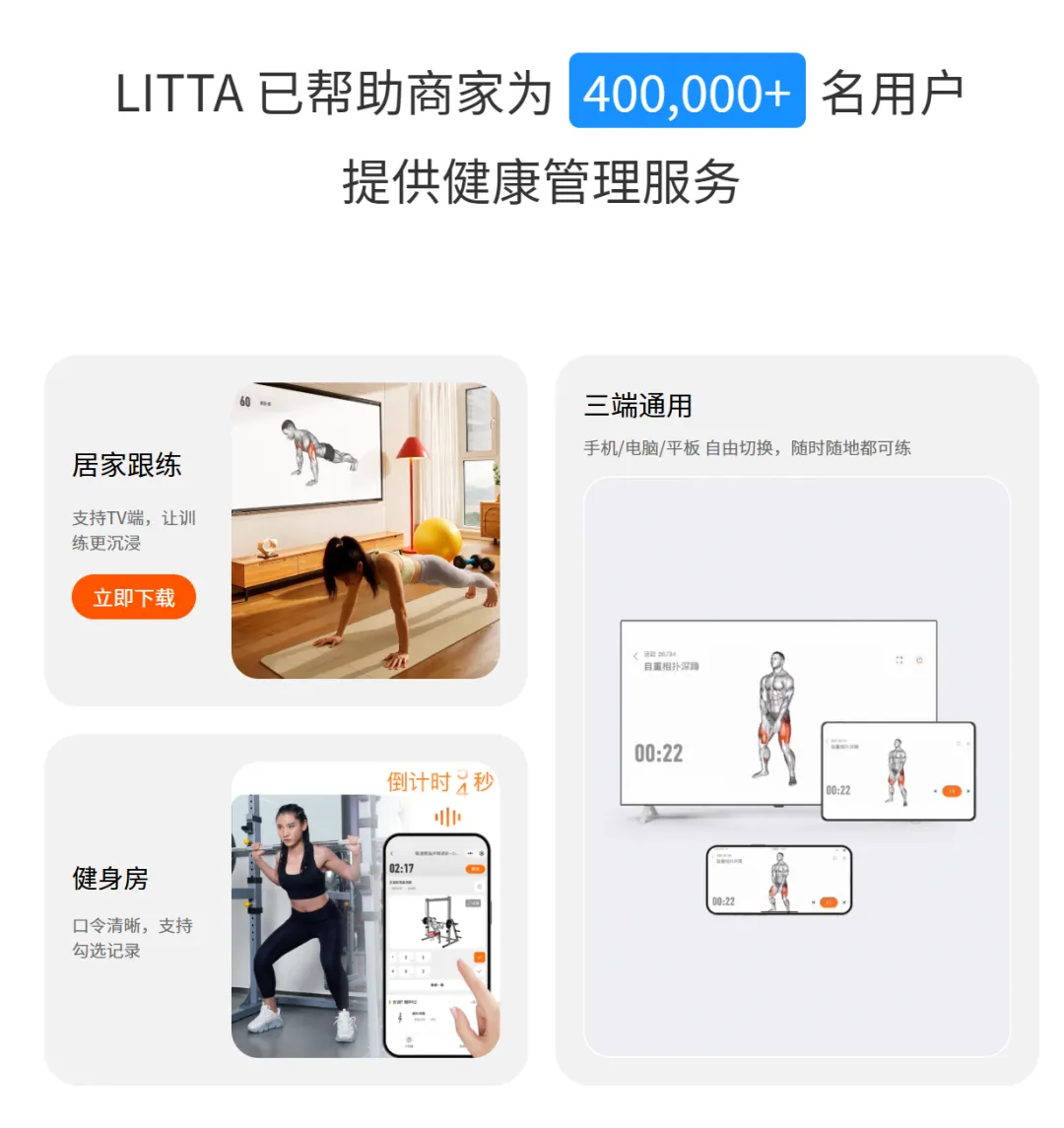 很多人请私教,最在意的就是“有人督导、有人陪伴”,但私教也有短板——要花大量时间观察你的动作、记录训练数据,有时候精力不够,反而顾不上给你个性化调整。而LITTA的模式,就解决了这个问题。