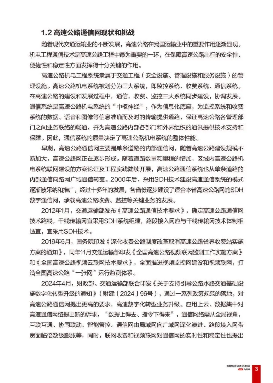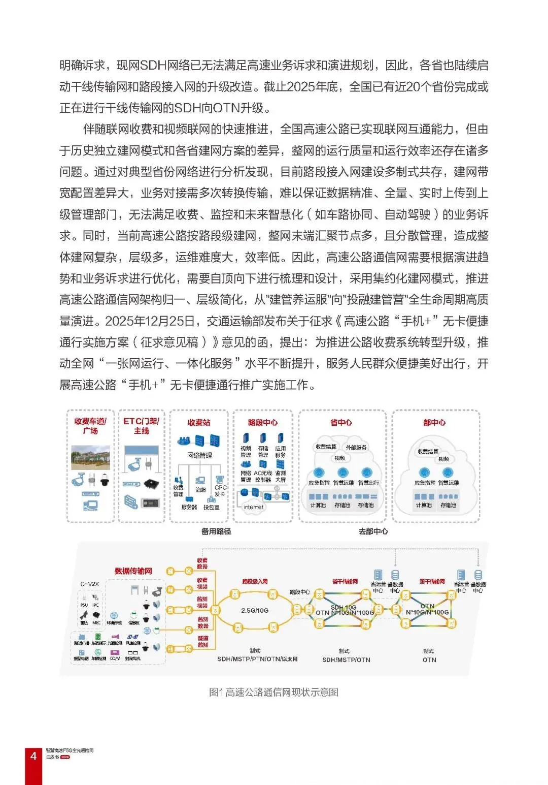 通信网现状与问题:高速公路通信网历经 PDH、SDH、OTN 阶段,现网以 SDH 为主,已无法适配新需求,存在多制式共存、带宽不足、业务传输转换繁琐、运维难度大等问题,且车路协同、自动驾驶等智慧业务对带宽、时延、可靠性的诉求,倒逼通信网向新一代技术演进。