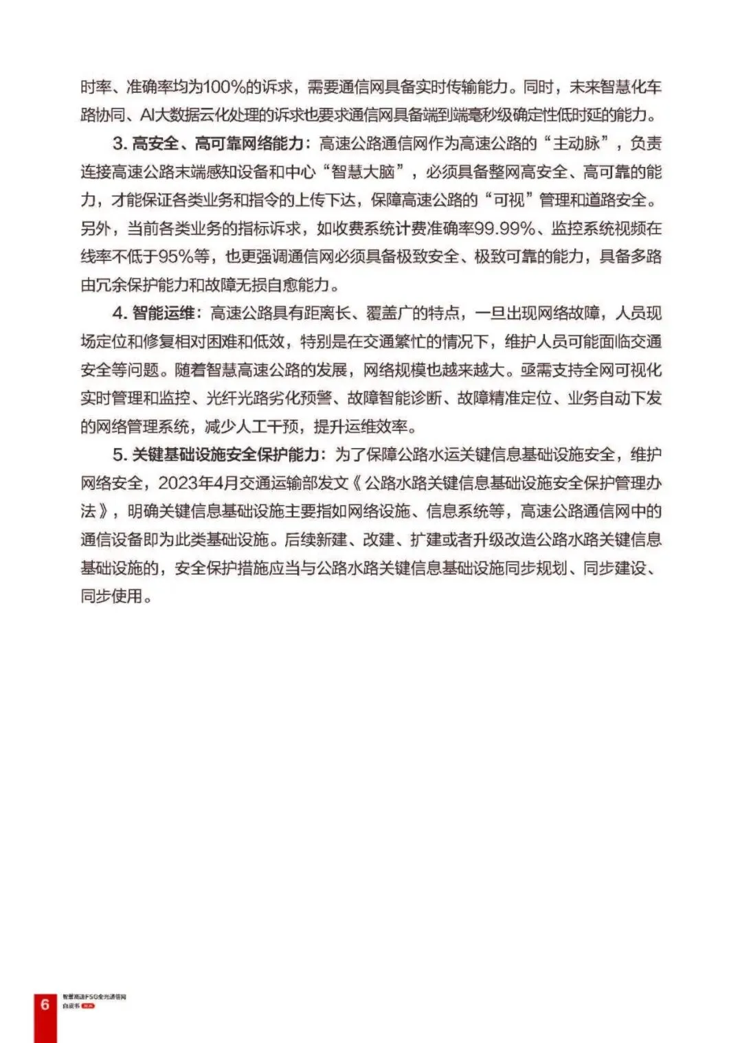 通信网核心诉求:需具备多业务硬隔离综合承载、带宽平滑升级、端到端毫秒级低时延、99.999% 以上高可靠、智能运维、关键基础设施安全保护六大能力。