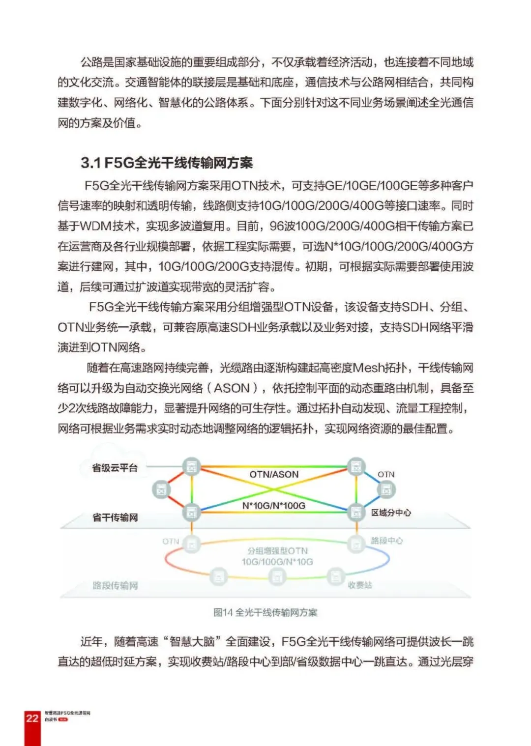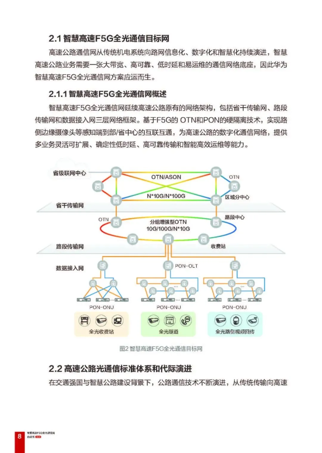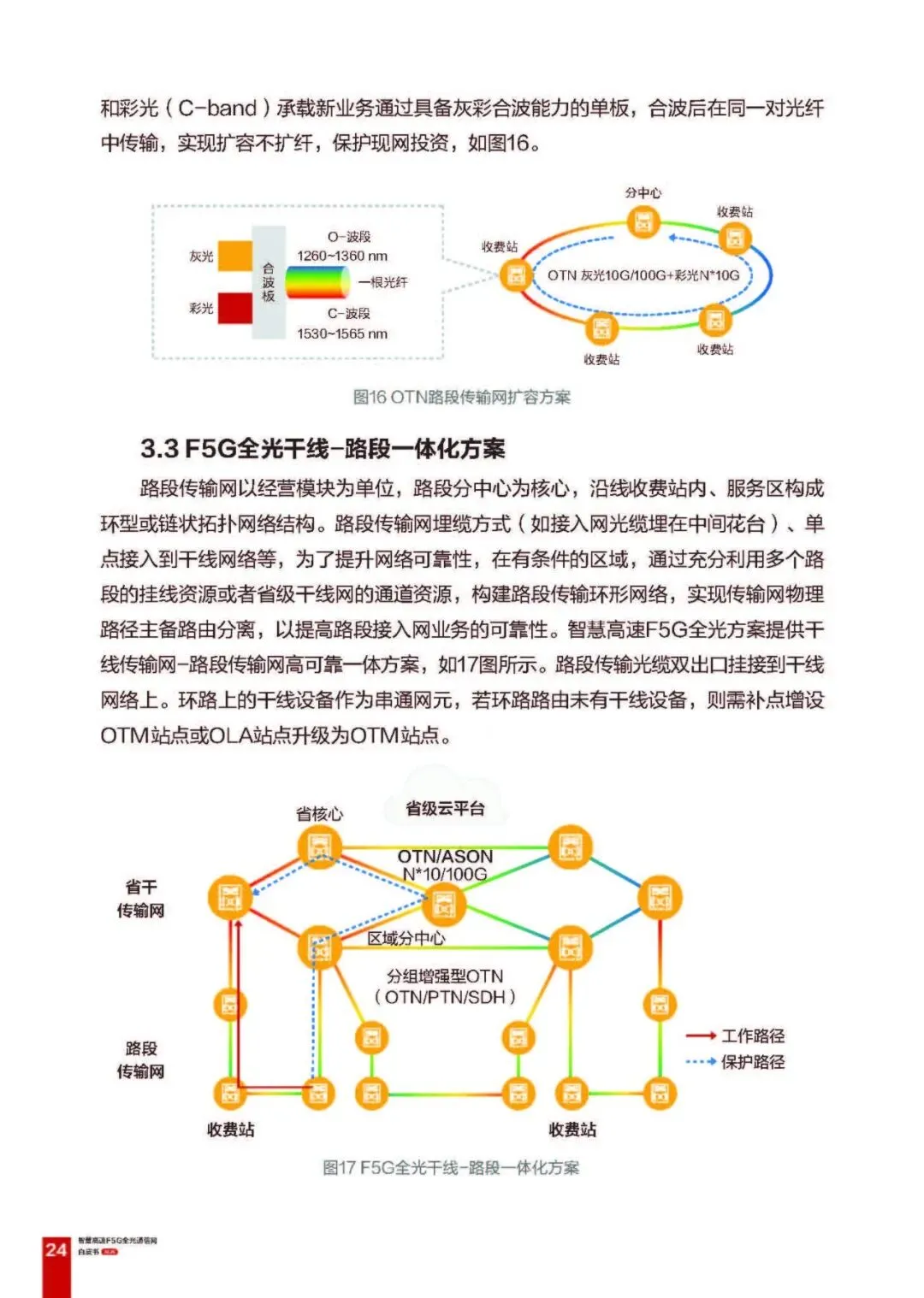 全光路段传输网:提供彩光、灰光、彩光 + 灰光混合方案,可灵活扩容,实现收费站一跳直达路段分中心,降低时延;