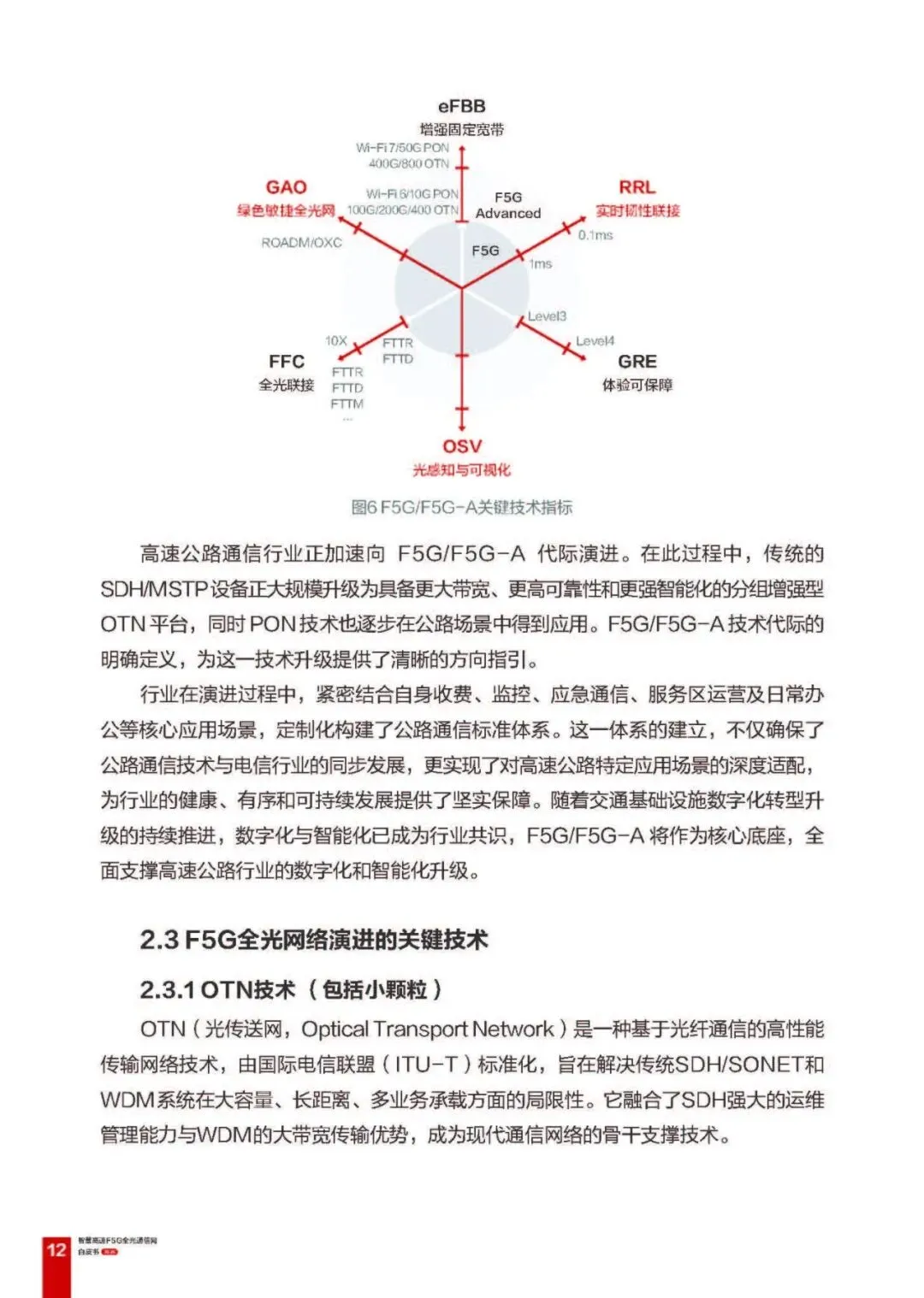 标准与代际演进:光通信标准由 ITU-T 制定国际标准,CCSA 和交通等垂直行业补充适配,F5G(第五代固定网络)是继 F1G-F4G 后的新一代技术,演进至 F5G-A 新增绿色敏捷、实时韧性、光感知与可视化特征,成为智慧交通的核心技术底座,高速公路通信网正加速向 F5G/F5G-A 升级。