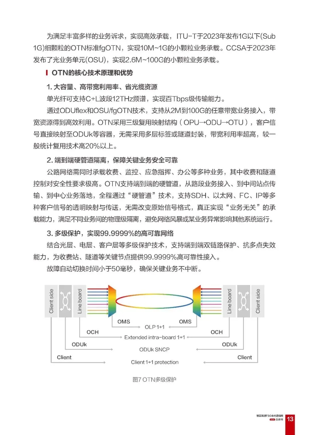 OTN 及分组增强型 OTN:实现大容量、硬管道隔离、多级保护,支持 SDH 向 OTN 平滑演进,兼容传统业务与新业务;